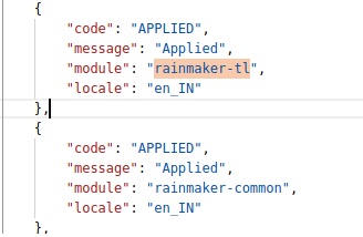 Localisation keys are added to the ‘rainmaker-tl’ locale module. In future, if any new labels are implemented in the Trade License (Citizen) it is pushed to the locale DB in the rainmaker-tl locale module. Below is an example of a few locale labels.