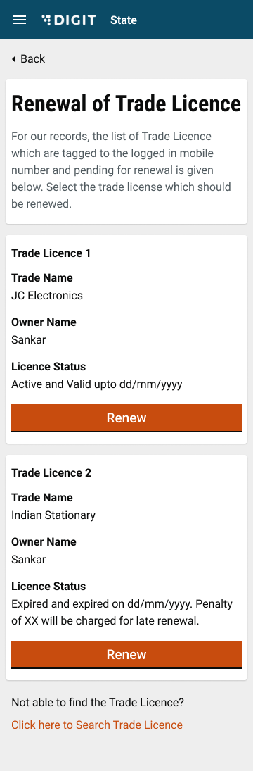 Citizens can renew their existing trade applications on the DIGIT portal. CE can also apply for TL renewal on behalf of the citizens.