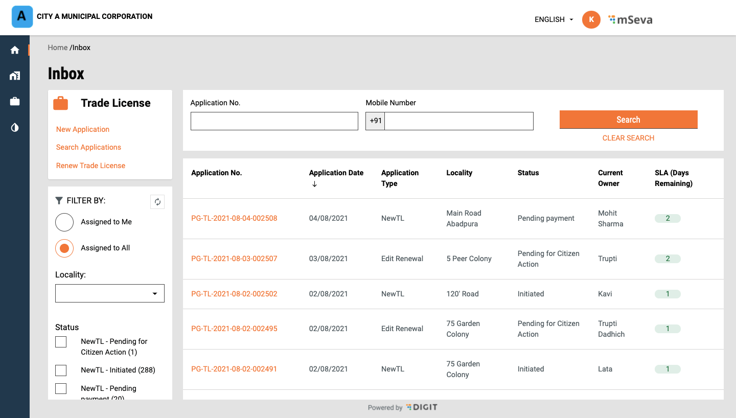 Click on Inbox to view the list of applications submitted.