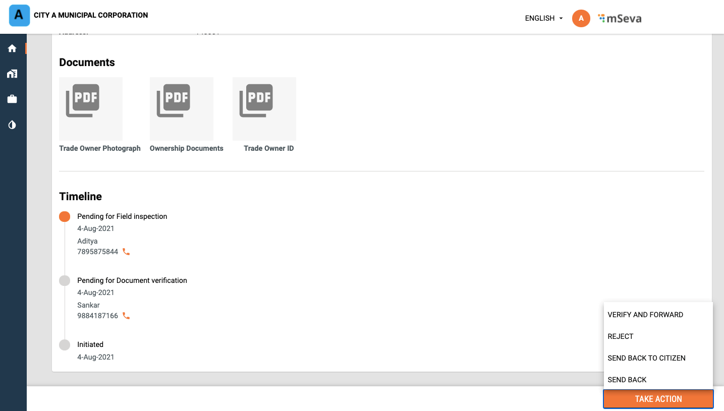 Click on the Take Action button and click on the Verify and Forward option if all details are found complete and satisfactory.