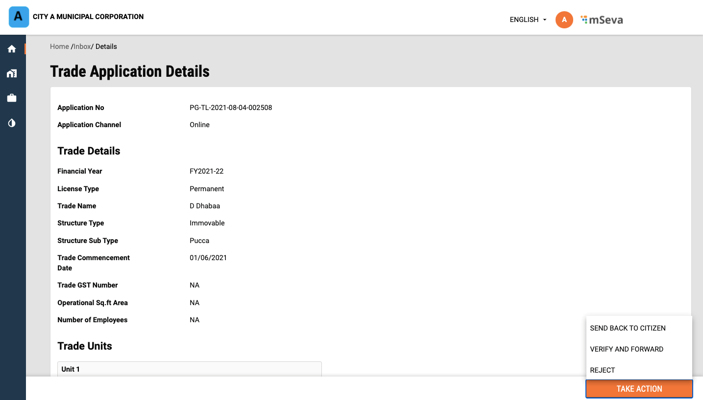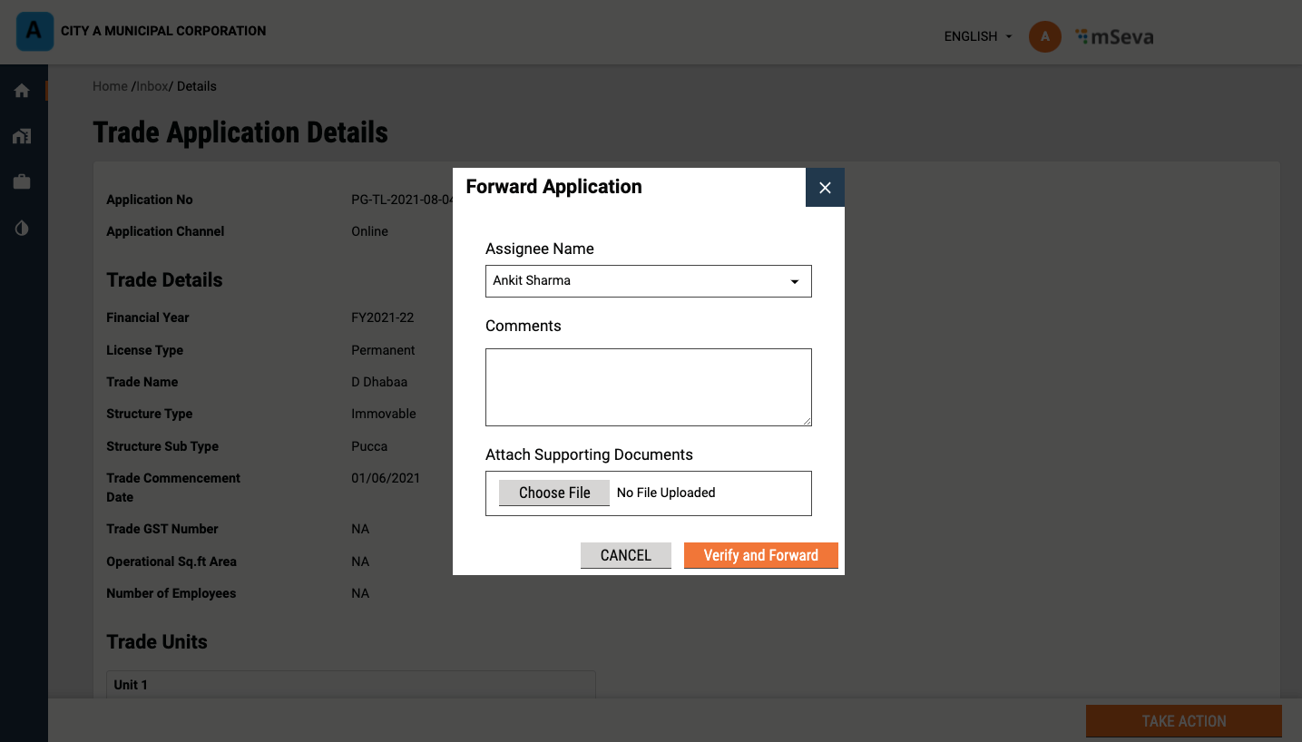 Click on the Take Action button and click on Verify and Forward option if all documents are found complete and satisfactory.