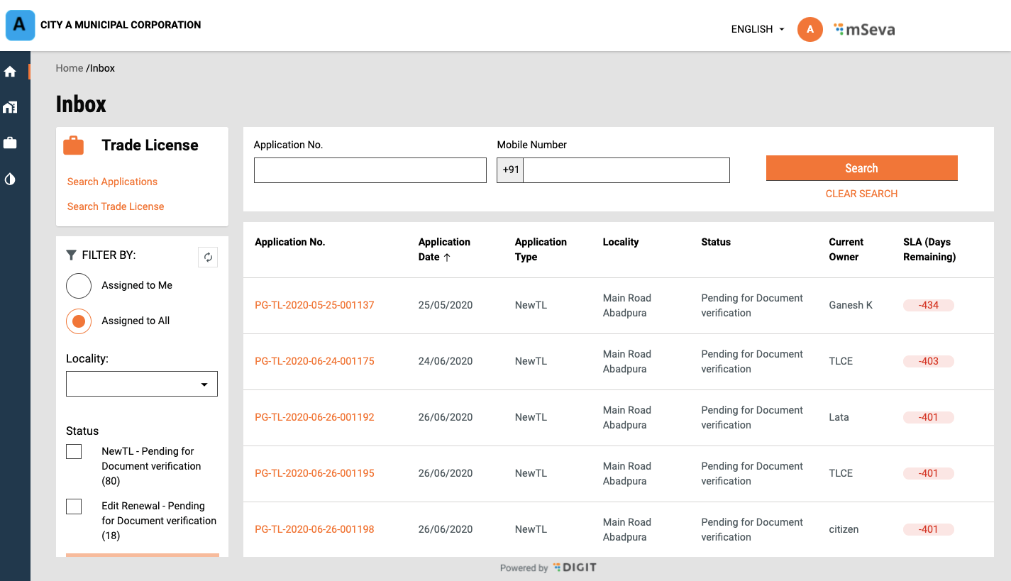 Click on the Reject option if the application details are found inaccurate. This will reject the application.