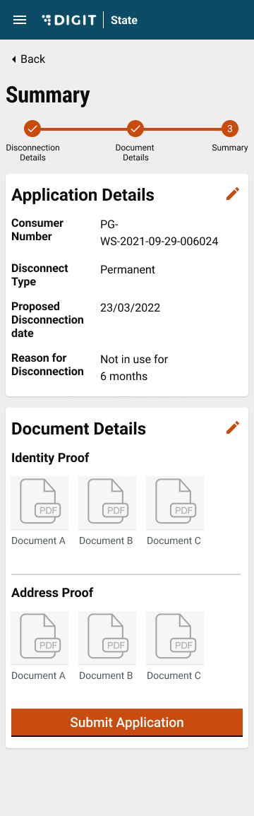 Verify the details in the Summary page, and edit the application if needed. Click on Submit to submit the application.