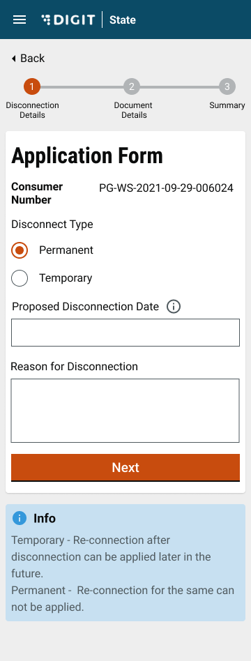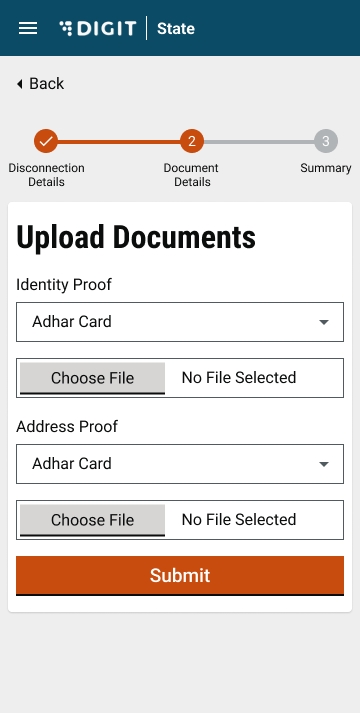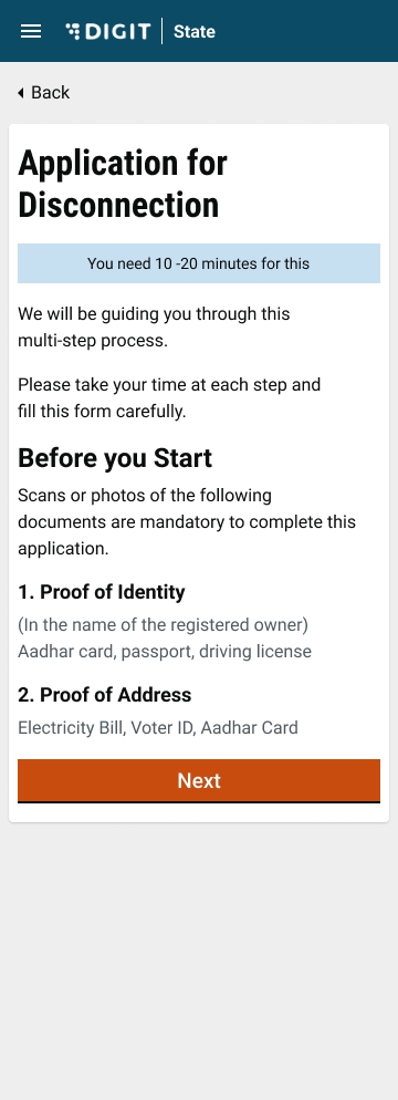 Make a note of the list of documents required for disconnection. Scan these documents to upload with the application.