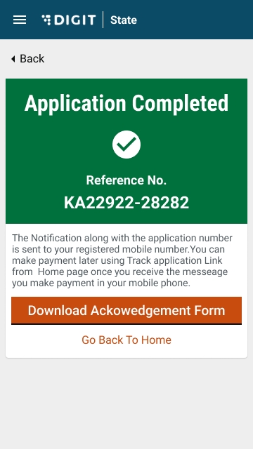 The screen displays the option to Download the Acknowledgement Form. Click on Go back to the home page to navigate back to the home page.