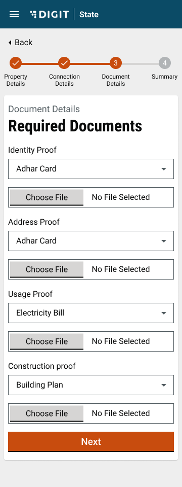 Attach the required documents. Click on the Next button to proceed.
