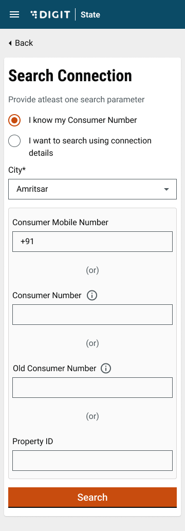 Step 2: To search by Consumer Number enter at least one of the following parameters:
