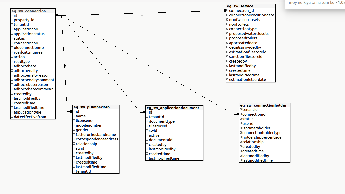 This is one of the major application of the egov stack which helps municipal and citizens to handle sewerage services like creating sewerage connection, searching sewerage connection, sewerage connection, also creating property if it doesn't exist and creating and updating workflow were depending on different roles of the logged-in user he/she can perform various actions like editing or perform document verification and many more specified in workflow documentation and SMS & email notification sent to the owner for various actions performed in the workflow.