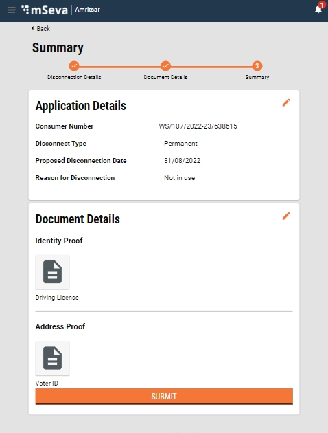 On Clicking on Next button in the Upload Documents Screen , it will route to Summary Check Page Screen