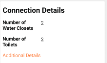 There are two links provided in the application details screen. One is for Property Details which allows users to see the in-depth details of the property associated with the application. The other is available on the Connection Details page to view the Additional Details of the connection for the application.