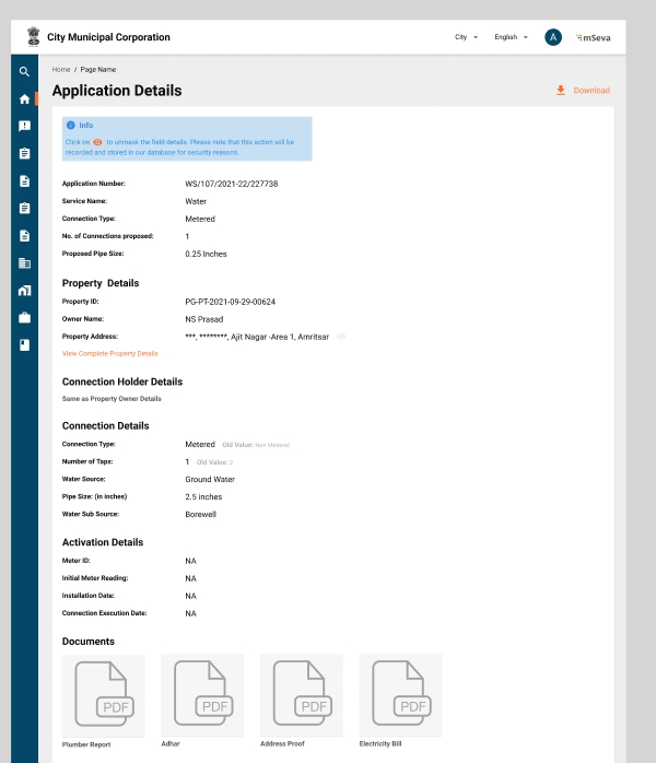 Clicking on the Application Number in the inbox/search screen/connection search routes users to the application details screen. A search call is made before rendering the screen and details are populated based on the search response.