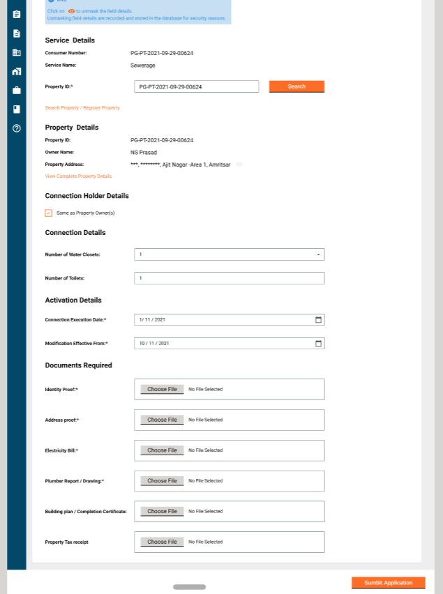 Objective: The Apply and Modify feature in the WS module allows counter employees to create or modify Water and Sewerage applications.