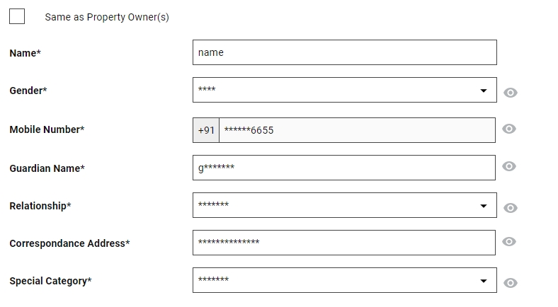 Particular entries of an object from the search API will appear masked if it is enabled in the MDMS (mentioned in the technical implementation section below). This is based on roles and if the value is masked in UI, the eye icon will be available adjacent to it. Clicking on this icon allows users to unmask it.