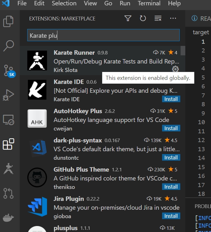 Pre-requisite: karate Runner plugin installation in VS code editor as specified in Readme.md