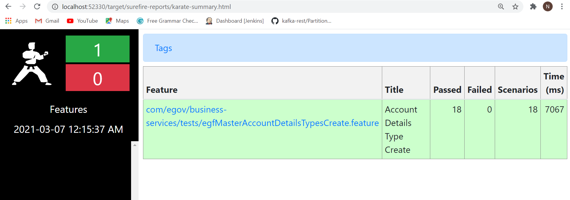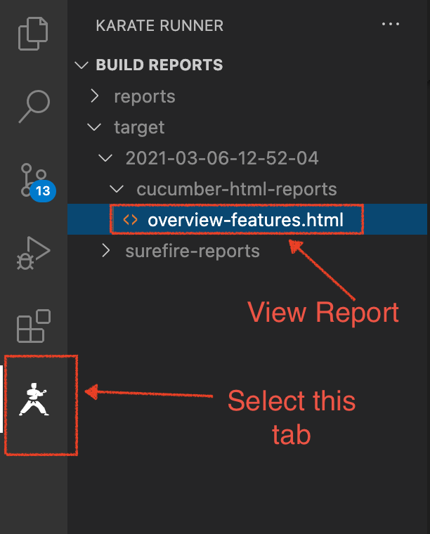 Select the karate runner tab and click on overview-features.html to view the reports as shown in image.