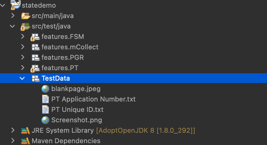 Add the state-level tests in this new maven project and use the already existing step definitions and utilities from the core UI automation repo.