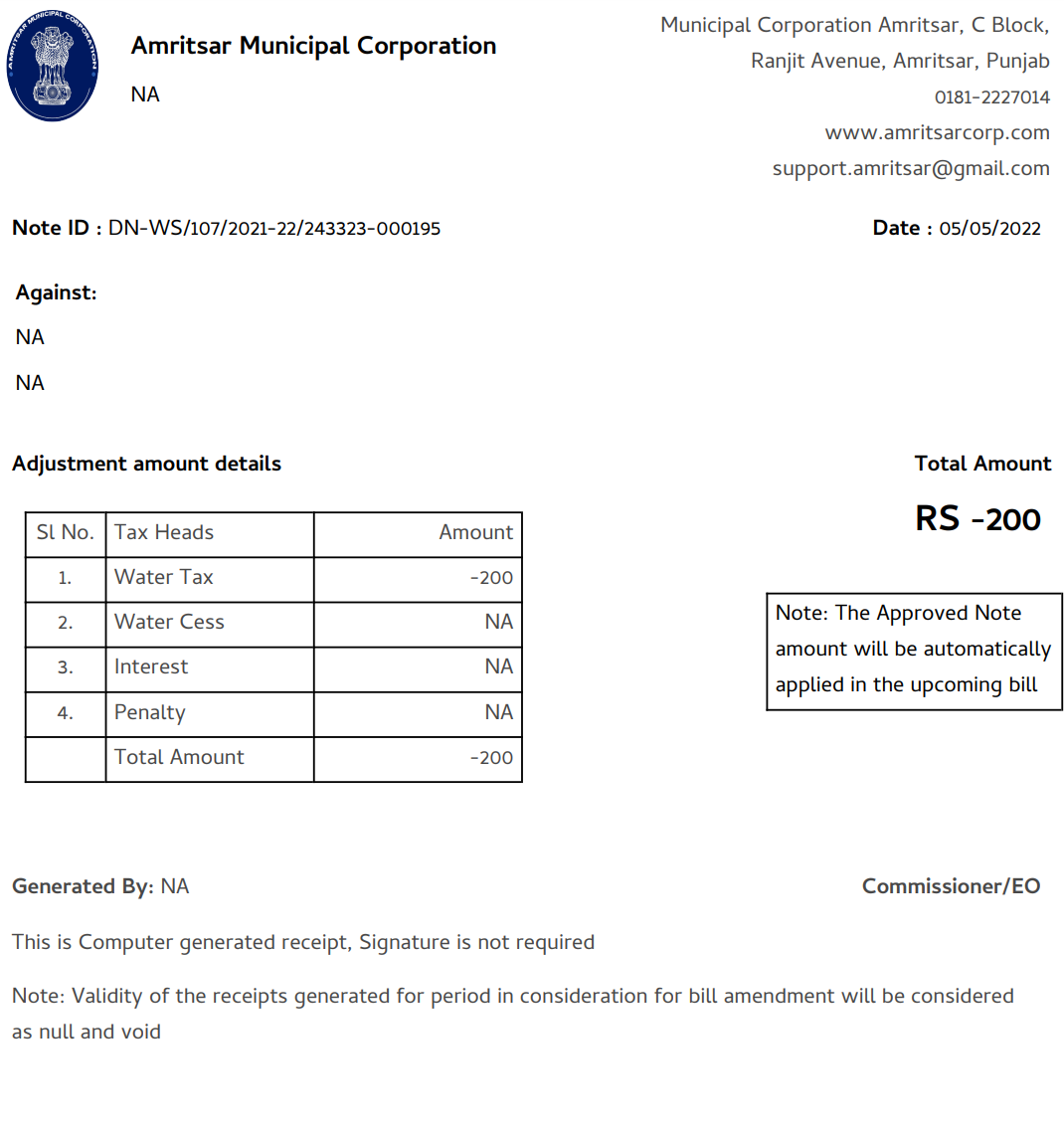 The first column of the result is the Bill Amendment number and every cell in this column is a link that leads the user to the Bill Amendment application details. This page has all details regarding the amendment application.