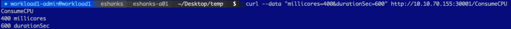 Ok, now that we have seen the “no-load” state, let us add some CPU load by making a request to the pod. Here, we increased the CPU usage on the container to 400 millicores.