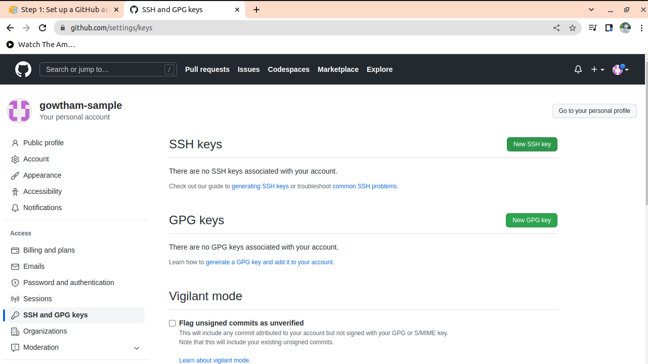 * Click on **New SSH key** and paste it. Click on **Add SSH key**.