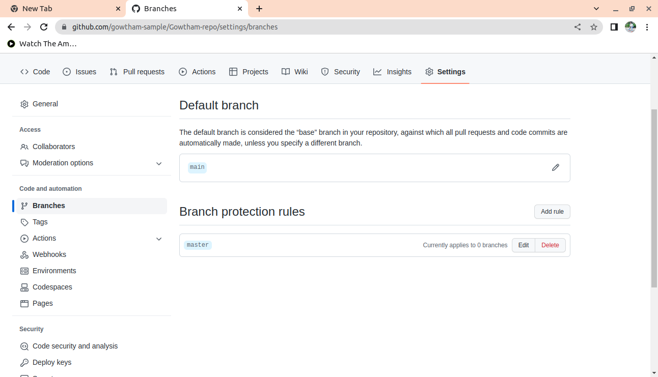 # Enabling Branch protection: