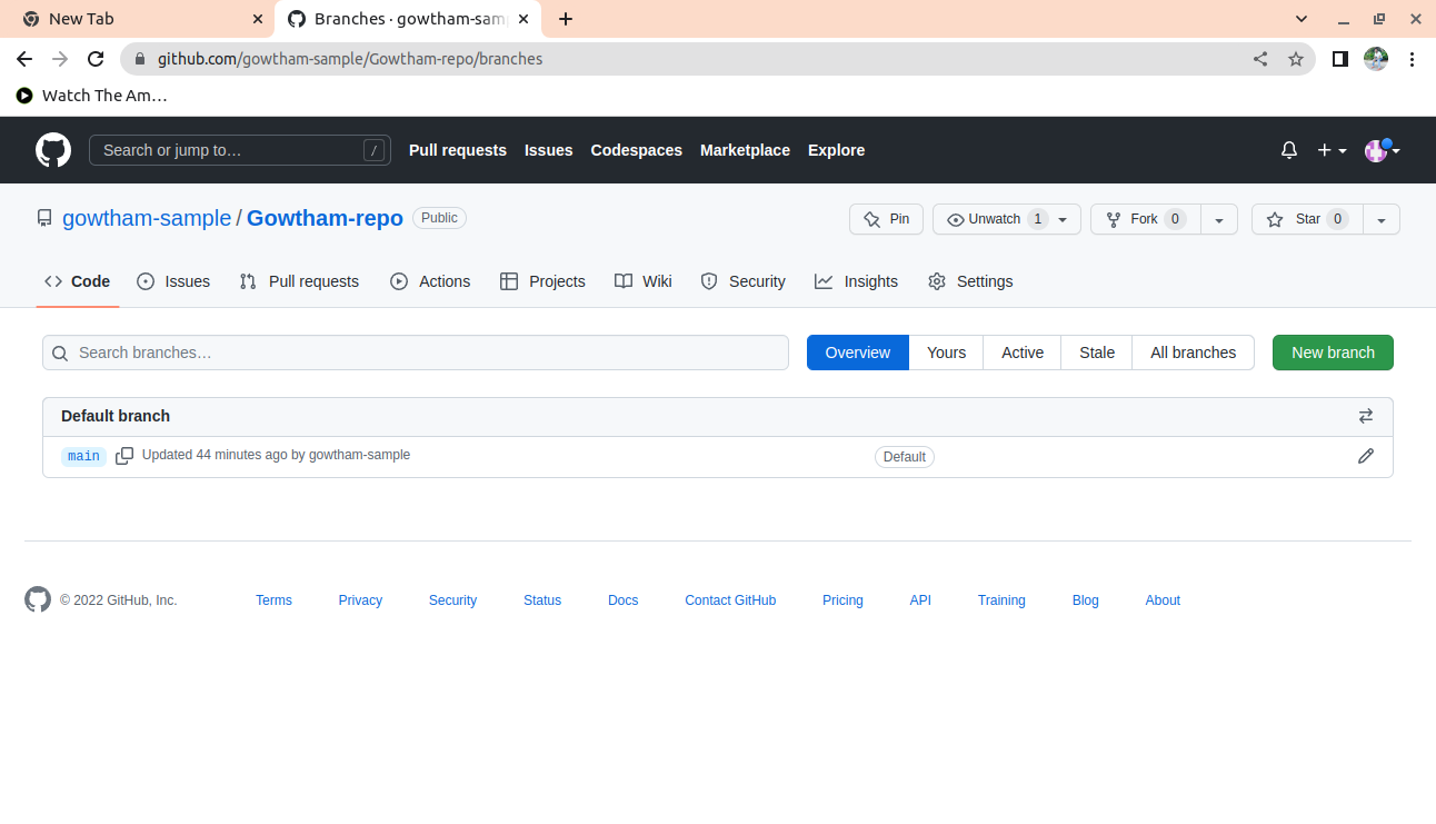 * Go to the repository and click on **new branch.**