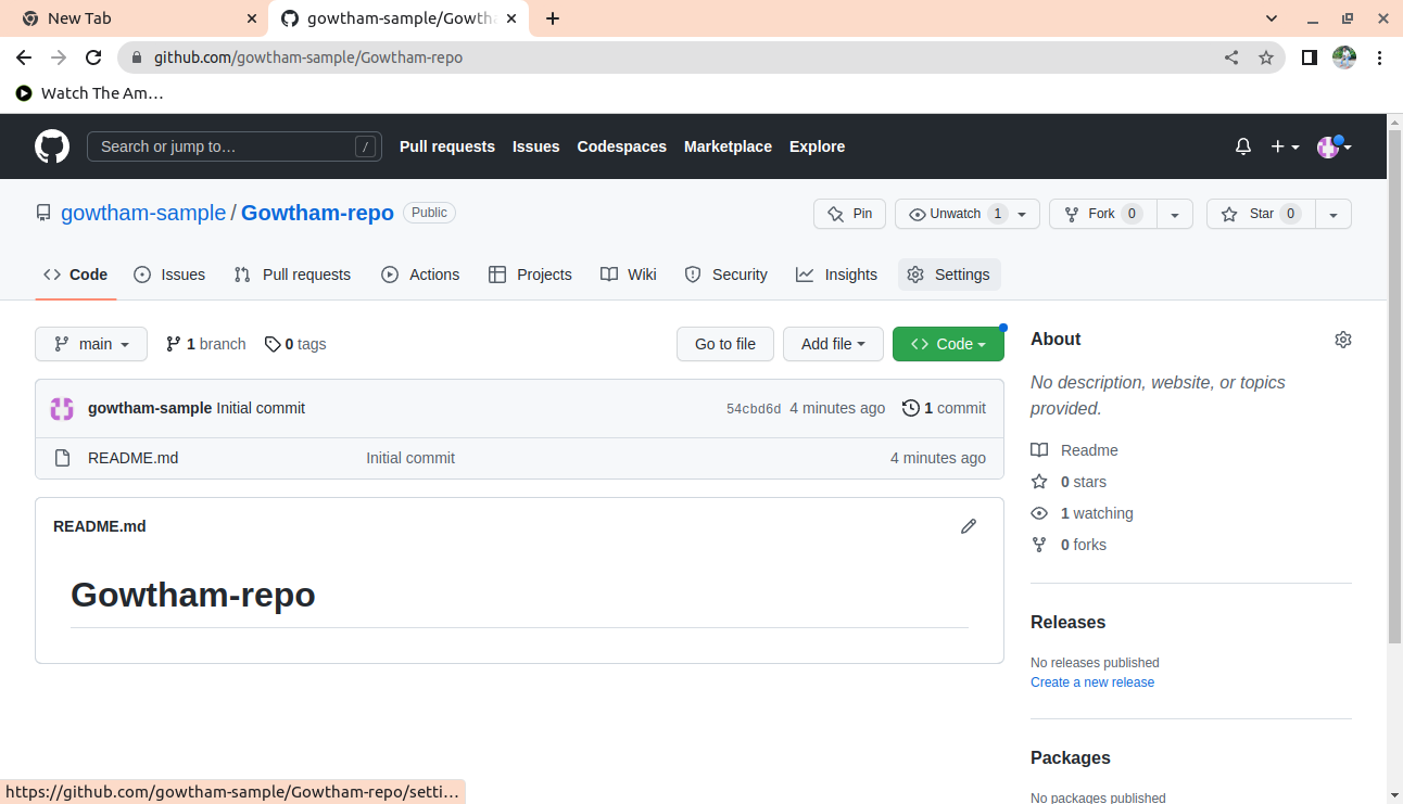 * Open <https://github.com> and choose any repository.Go to the main page. Click on **settings.**