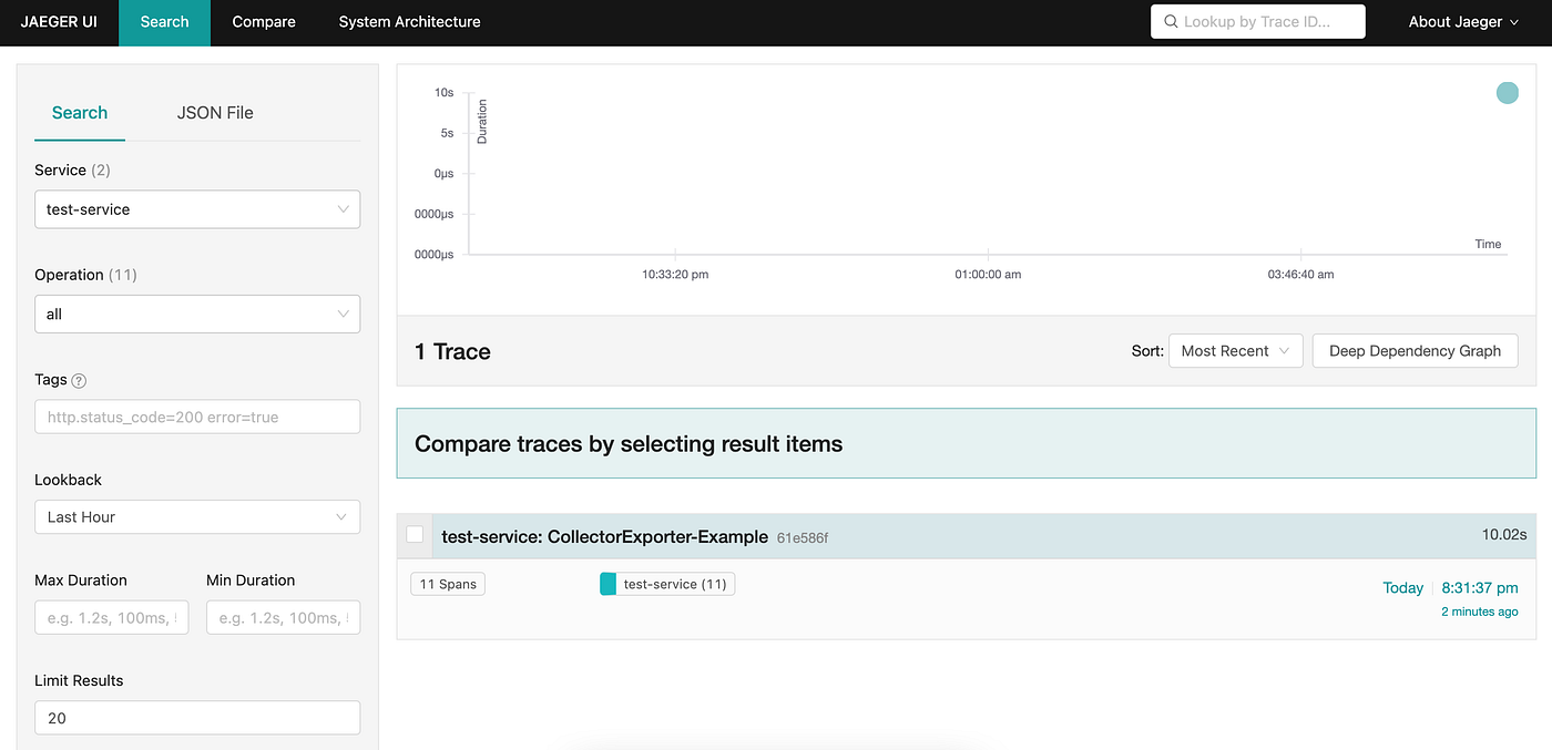 This document has covered how we deploy an OpenTelemetry collector on Kubernetes. Then we sent trace data to this collector using an Otel SDK instrumented application written in Go. From there, the traces were sent to a Jaeger collector and visualised in Jaeger UI.