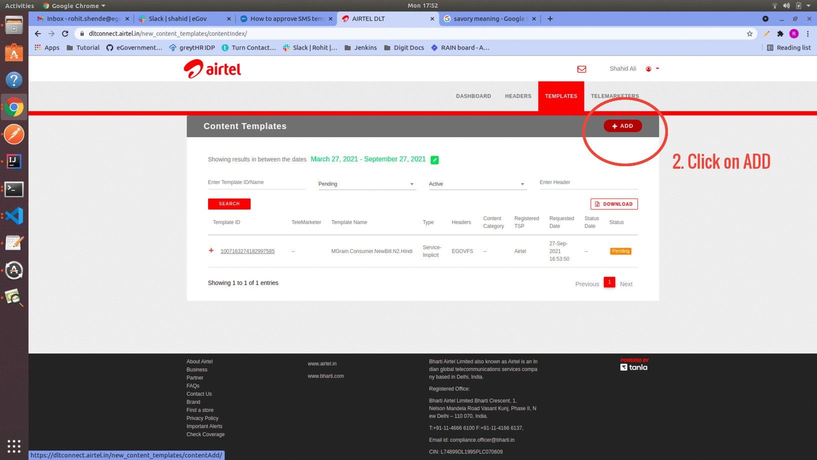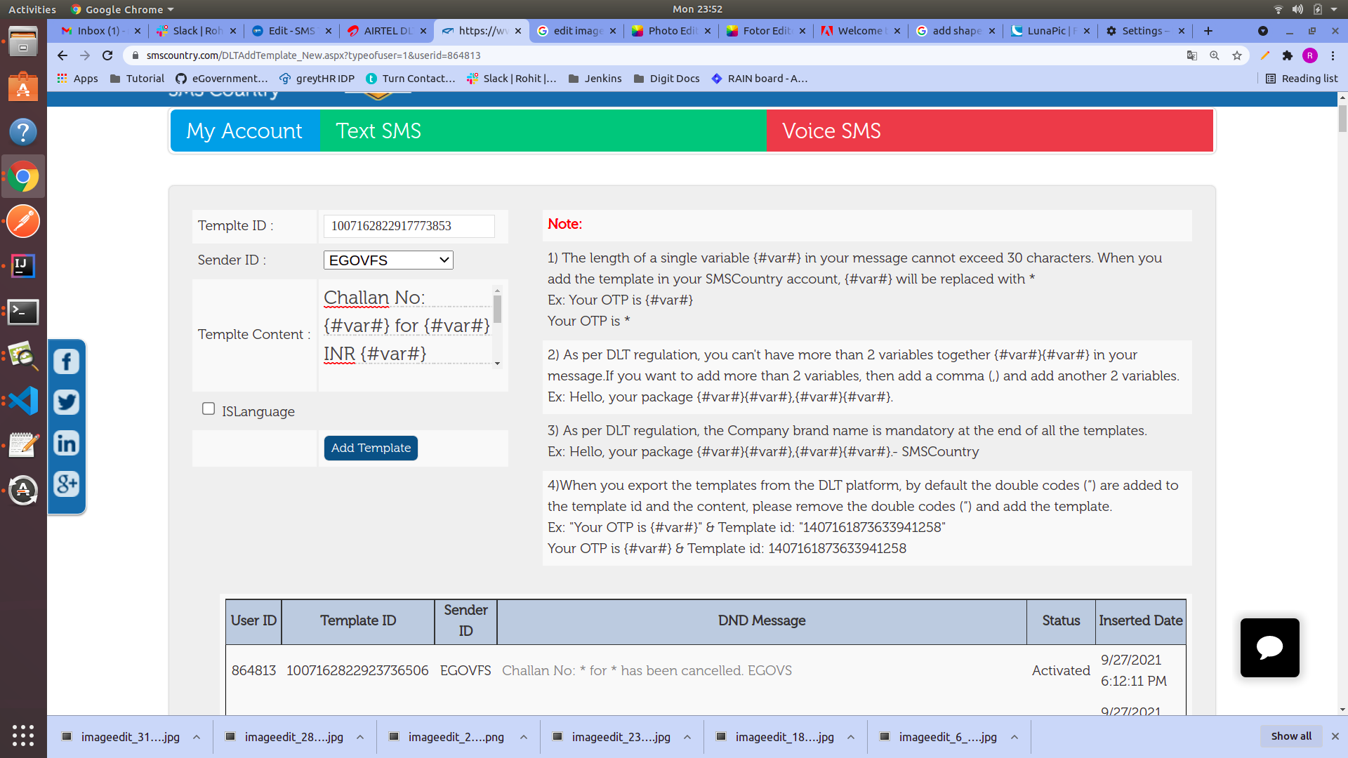 Then click on the **Add DLT Template** button.
