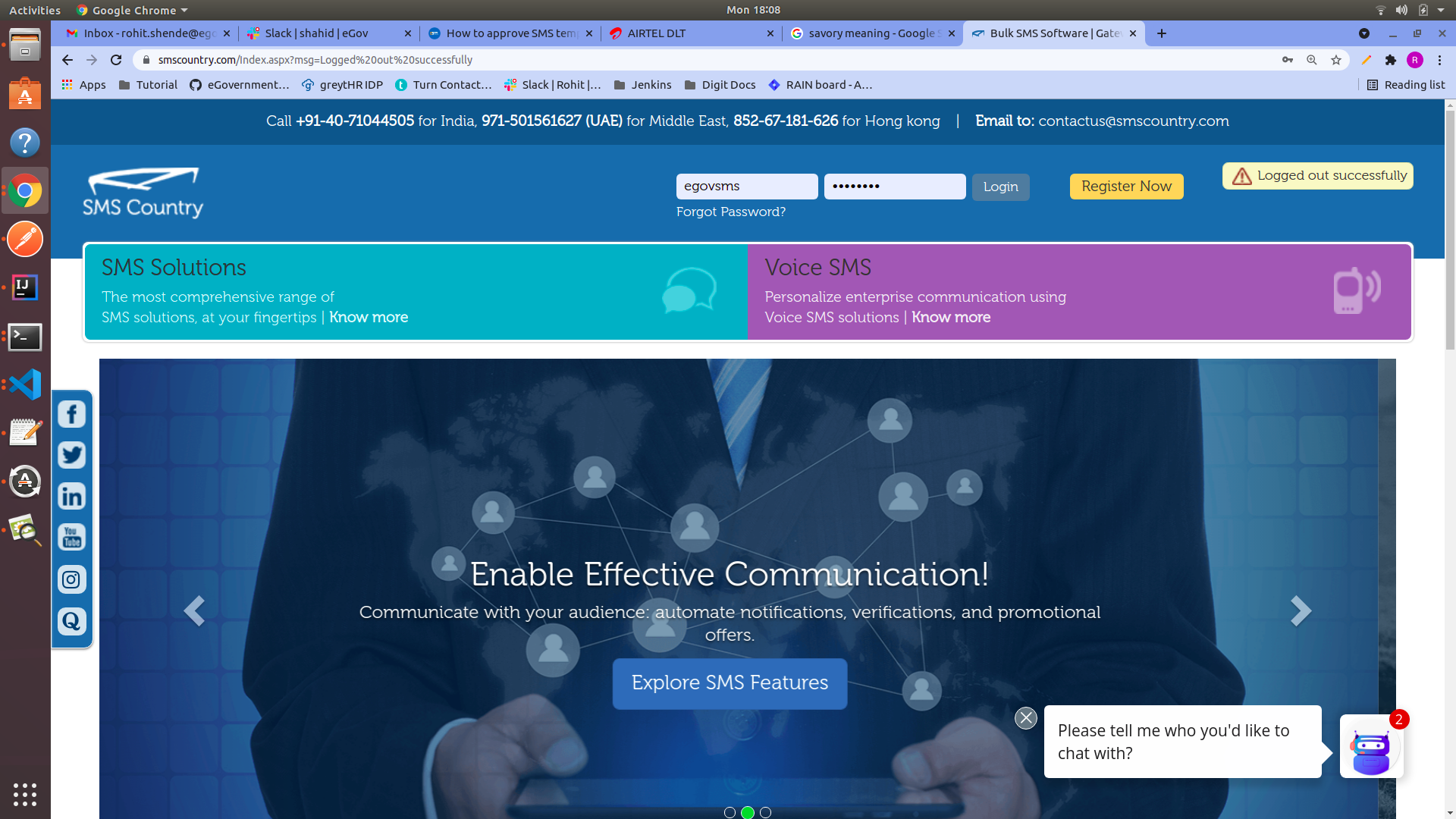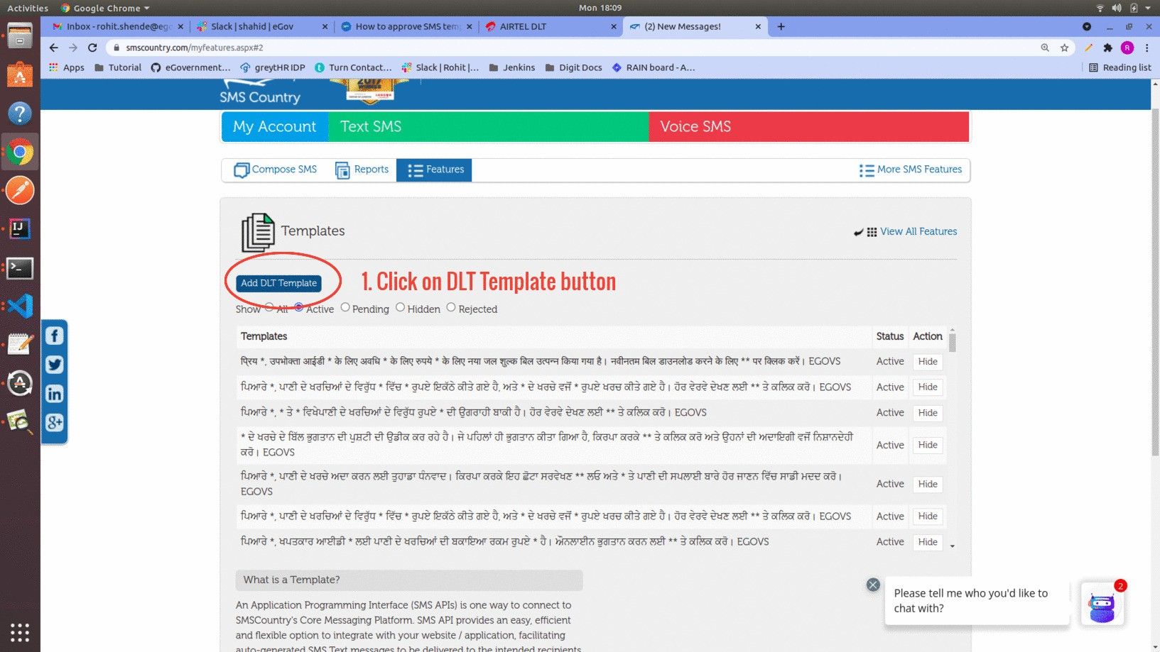 The DLT-approved template is added to the SMS Country portal and is ready to use.