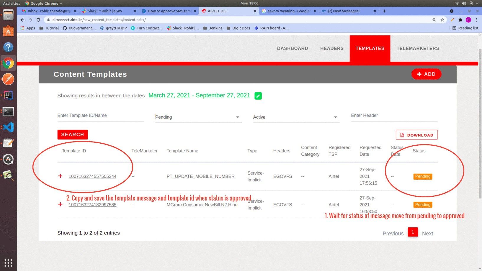 After clicking on the Save button, the template is added to the portal. Wait for the approval of the template.\