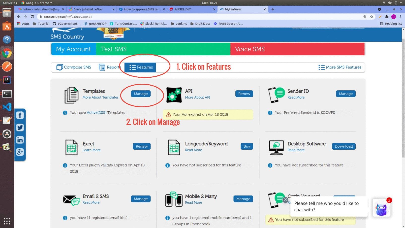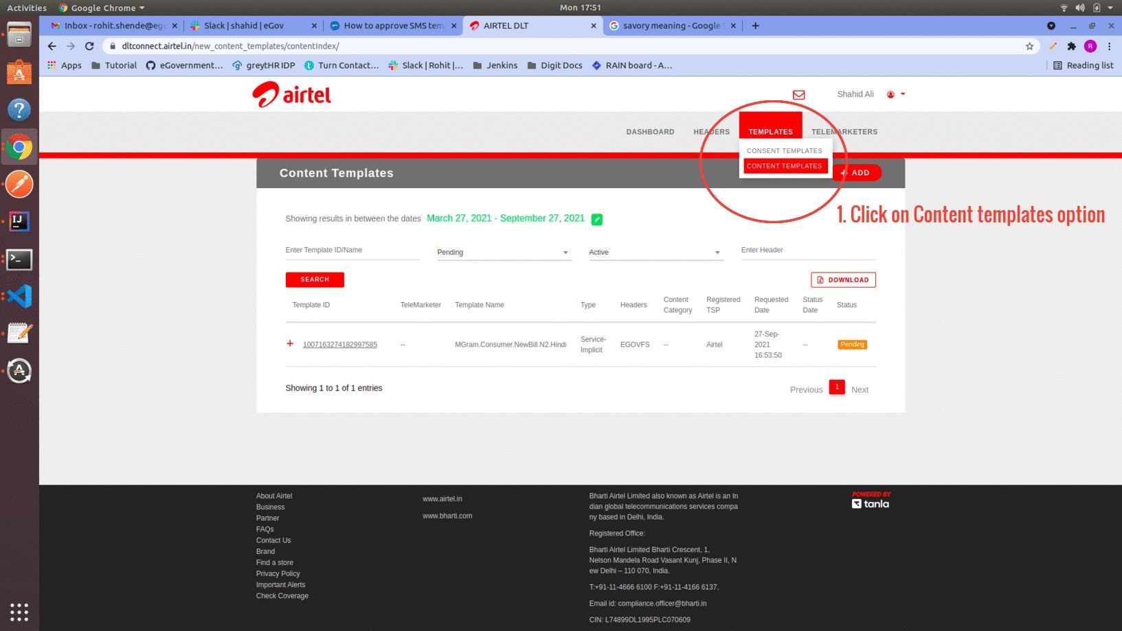 Below are the steps to register the SMS template in a centralised DLT portal and to add the template in the SMS country portal (Service provider).