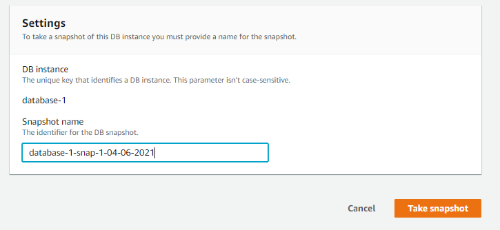 This will create a manual snapshot of the DB instance that you created.