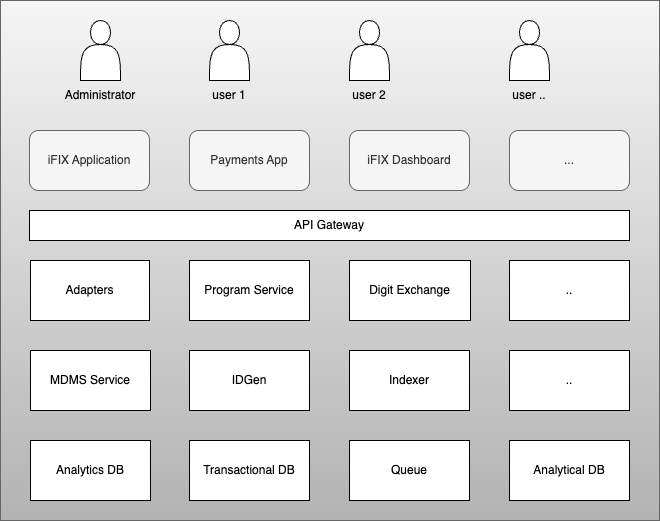 iFIX adopts a multi-layered, distributed architecture pattern, ensuring flexibility, maintainability, and scalability. Each layer comprises a set of microservices with specific roles and responsibilities, facilitating independent deployment, maintenance, and updates. This design enhances interoperability and allows for parallel development and testing.&#x20;