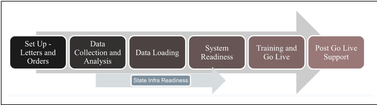 The multi-step approach that commences with go-live readiness planning across all ULBs is showcased below: