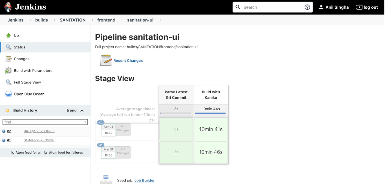 Go to the Jenkins build page. Click on SANITATION under the folder path mentioned below. frontend/sanitation-ui