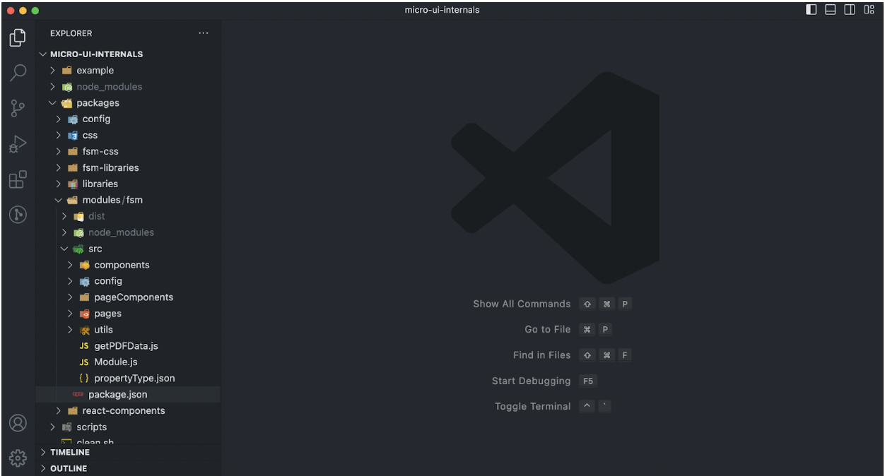 After creating the package.json for FSM, the project structure (as seen in the image below) is created: