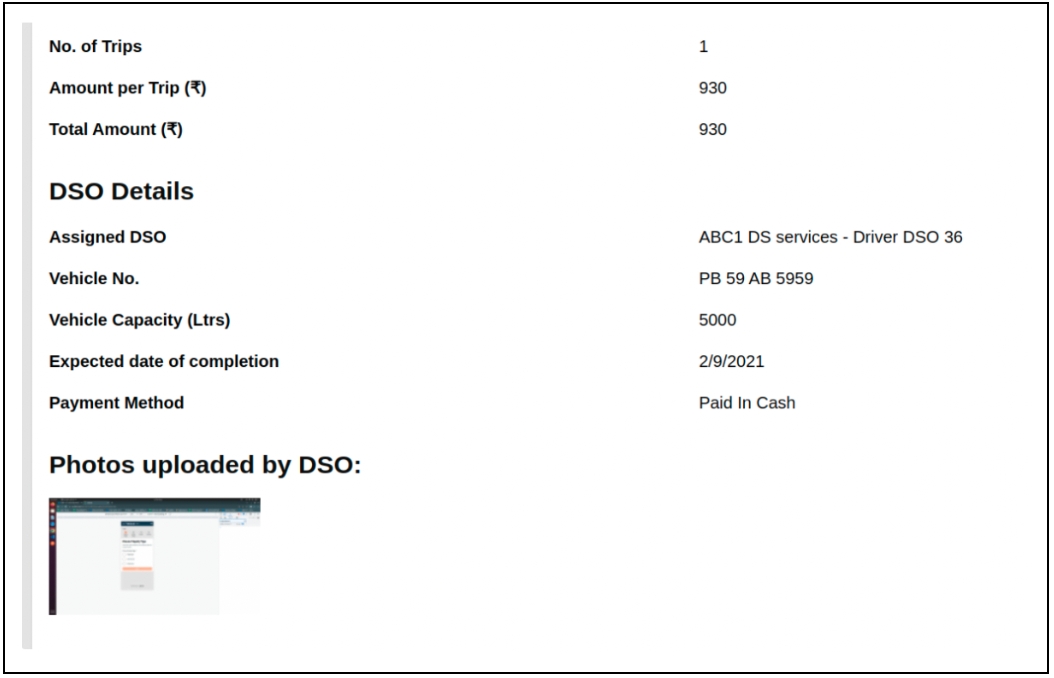 An employee/DSO can view the photo uploaded by the employee/DSO in complete request action.