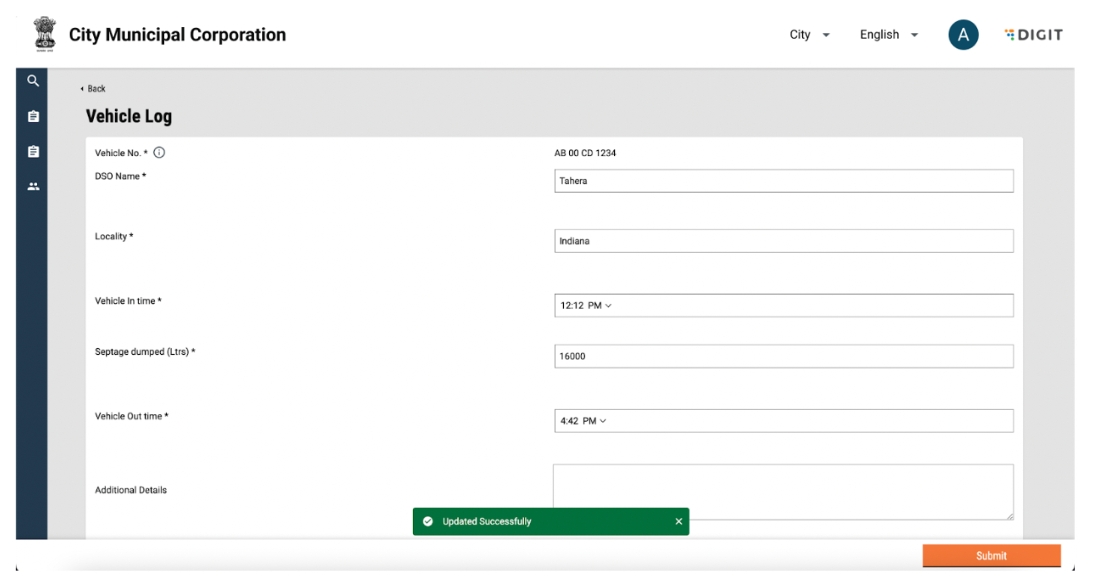 The Septage Treatment Plant Operator (SeTPO) receives multiple vehicles servicing various desludging requests in the urban local body (ULB) and adjacent gram panchayats (GPs) through the day, each day. Some of these trips made by some vehicles may be associated with the applications raised and serviced through the platform. Additionally, incoming vehicles may come in independently, without corresponding applications.