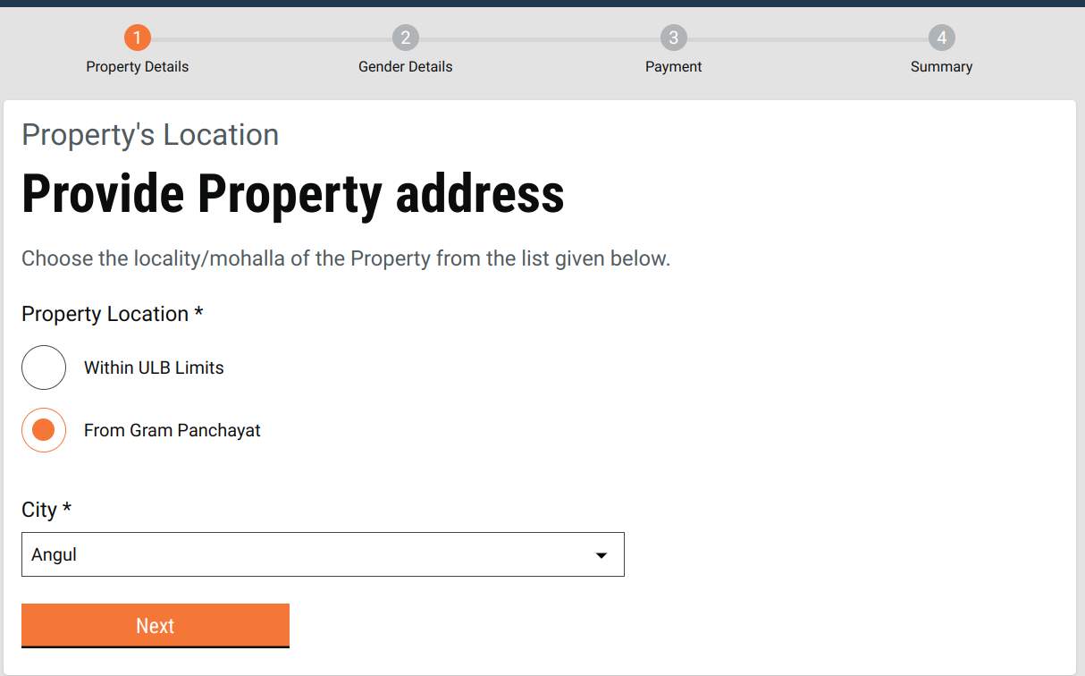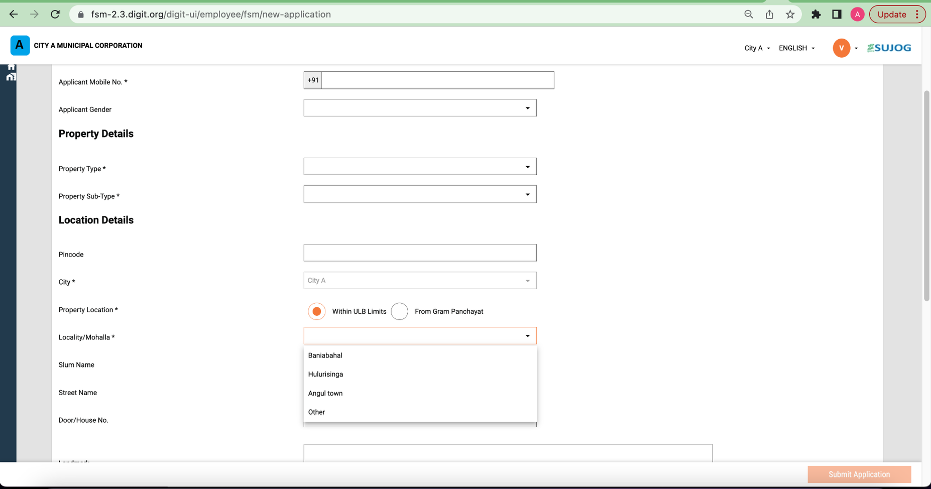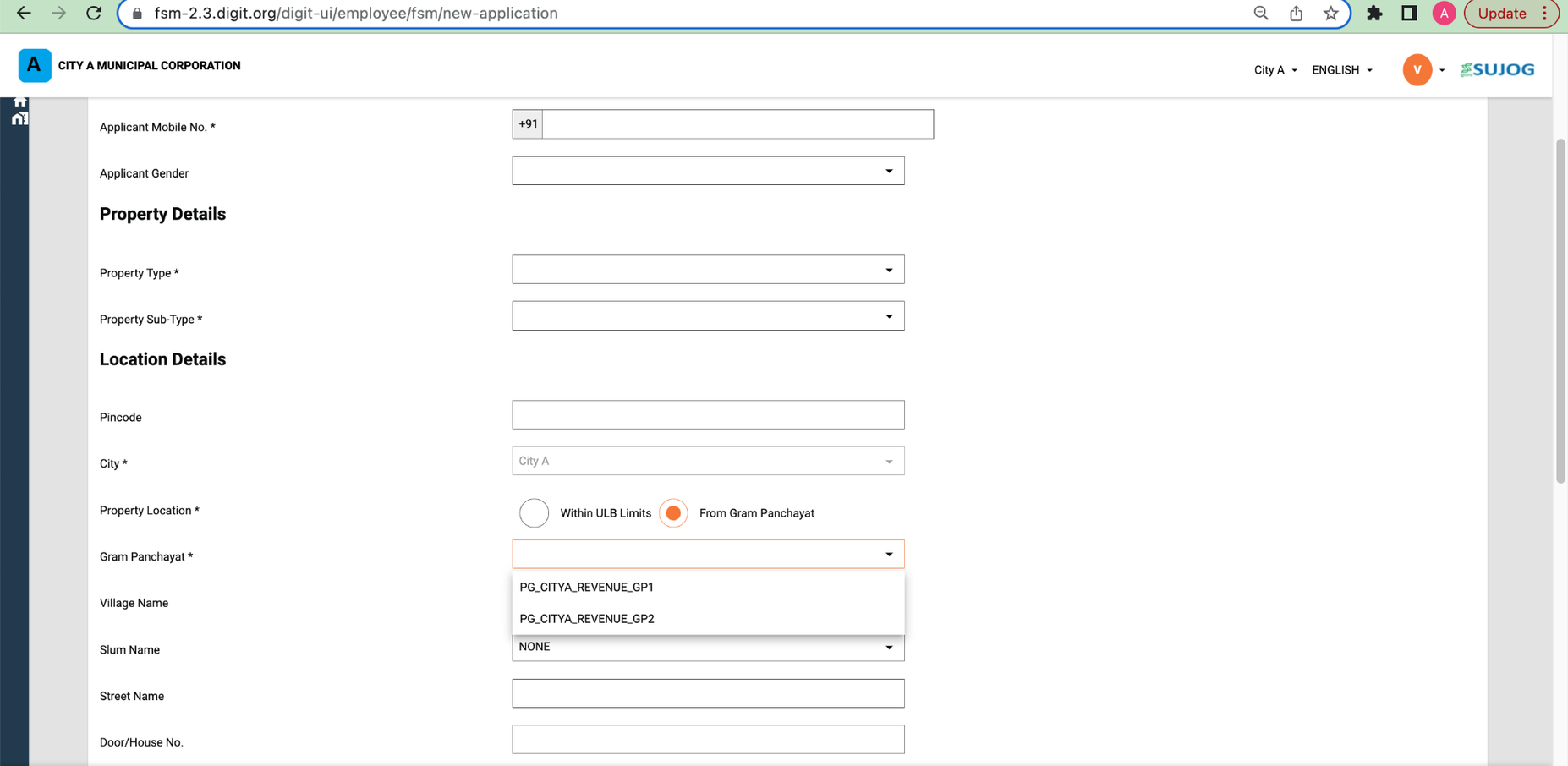 If the locality or GP is located outside the city, then select “Outside ULB Limits” and provide the locality/gram panchayat name in the text field.