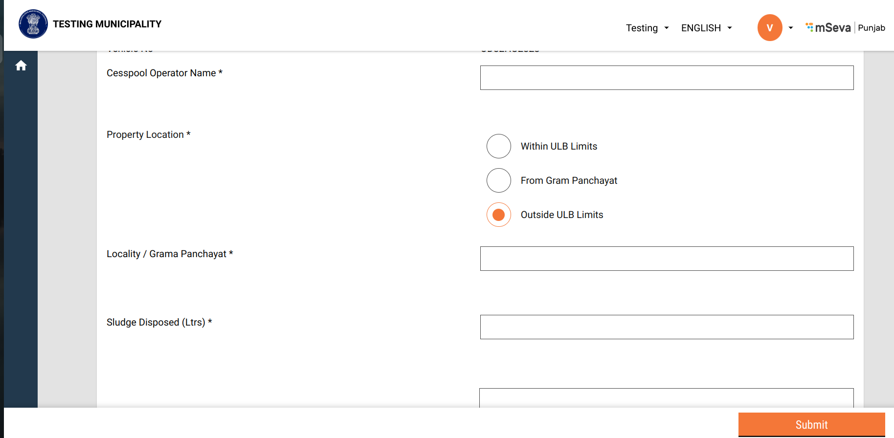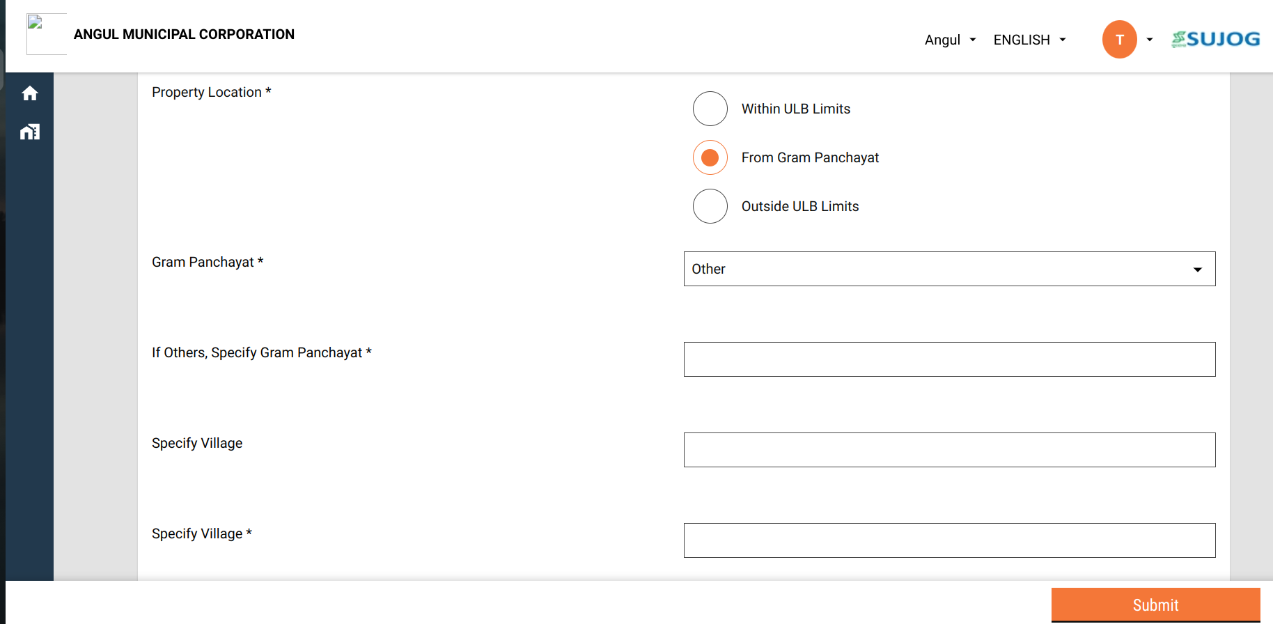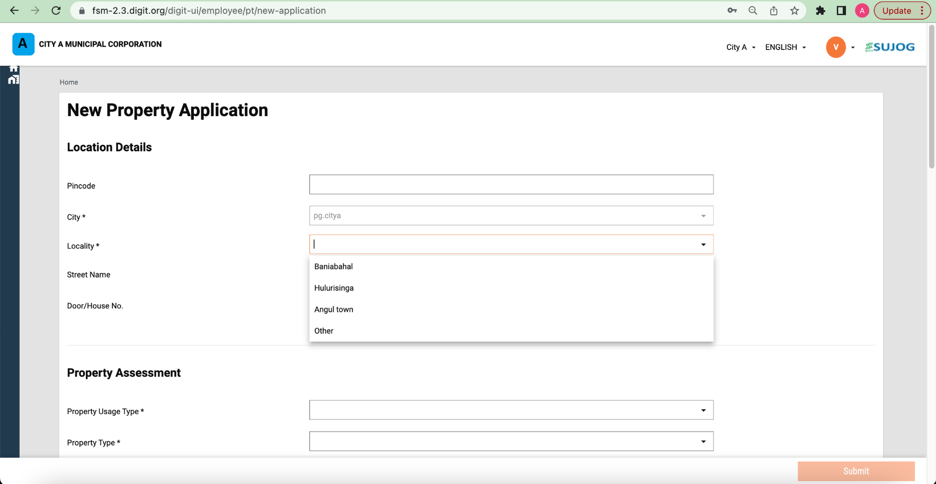 If the locality or GP is located outside the city, then select “Outside ULB Limits” and provide the locality/gram panchayat name in the text field.