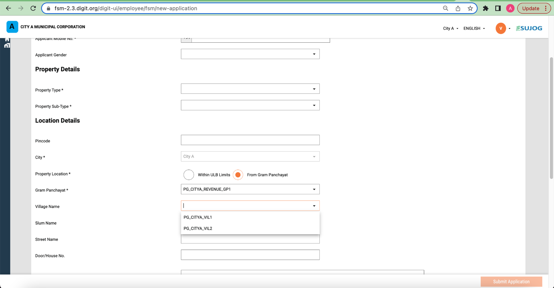 They need a provision in a system while creating a new application to either choose local municipalities or urban-supported villages.