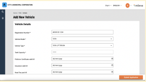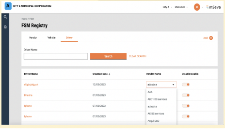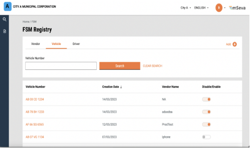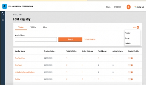 Add a new vendor, sanitation worker or vehicle by clicking on the ‘Add’ button.