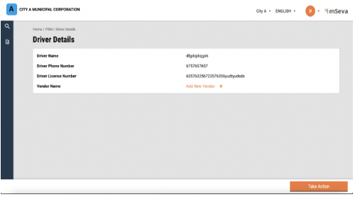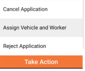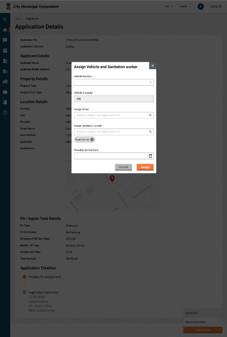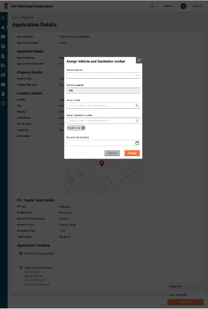 Post assigning vehicles, the “Take Action” button will show an option to assign sanitation workers.