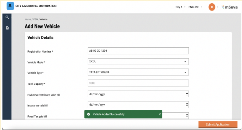 Once the user submits an application, a snack bar will confirm the successful addition of a sanitation worker.