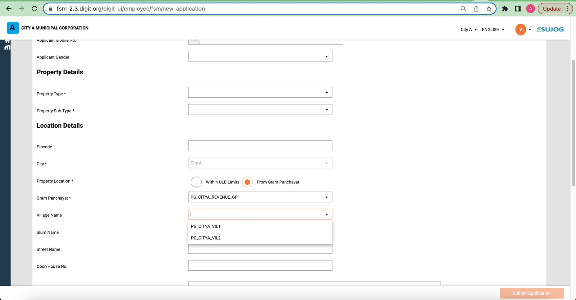 They need a provision into a system while creating a new application to either choose local municipalities or urban supported villages.