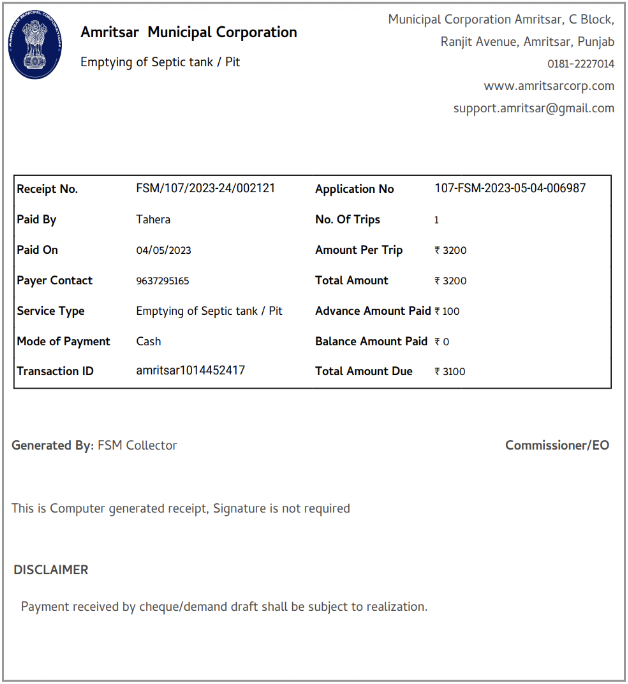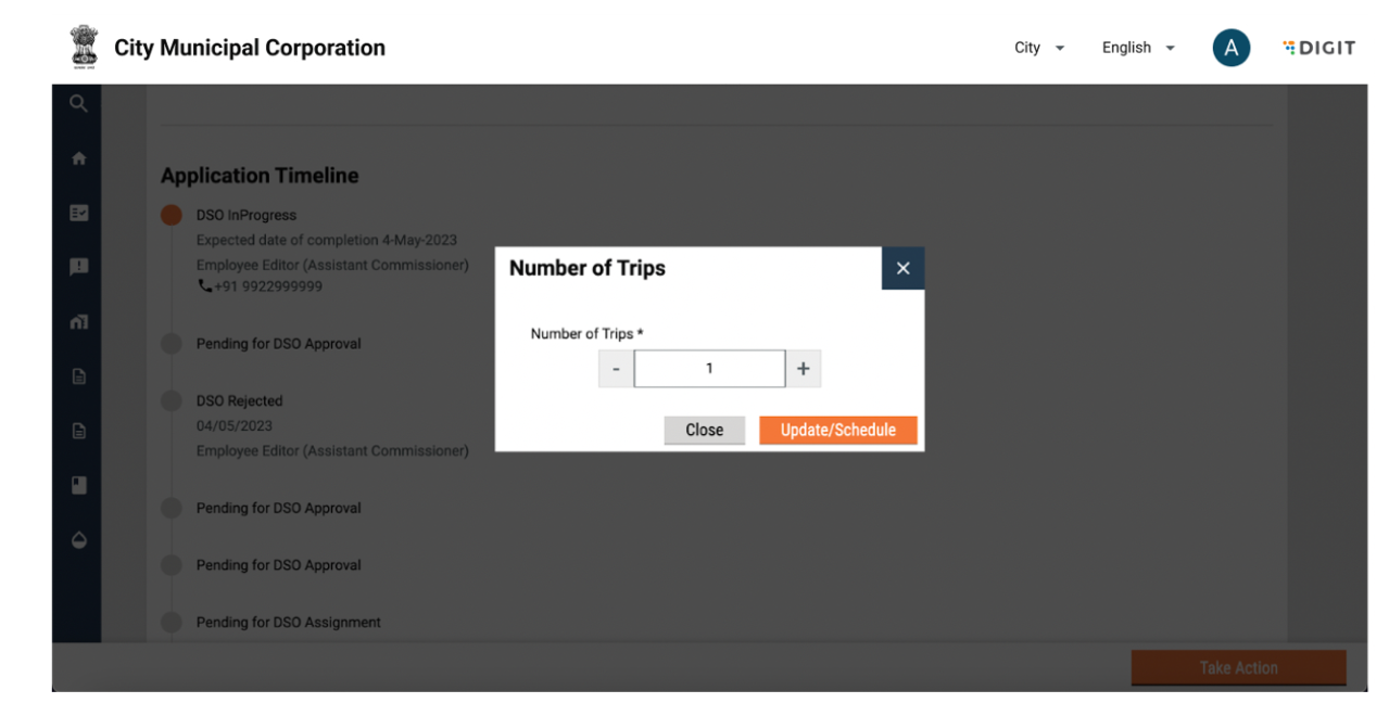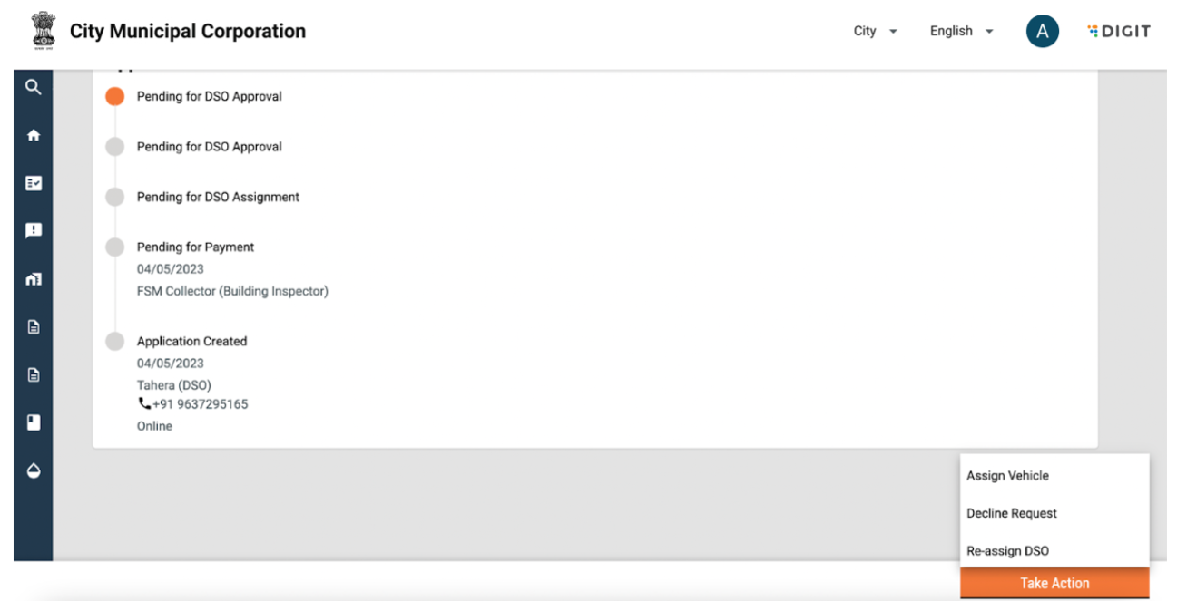The FSM Registry allows for the following actions from the frontend for a particular urban local body (ULB):