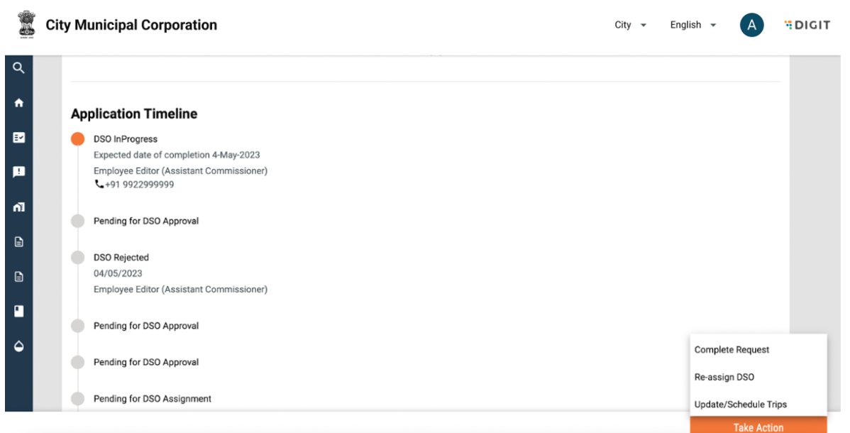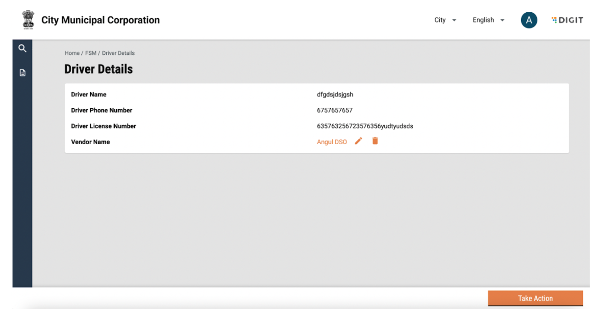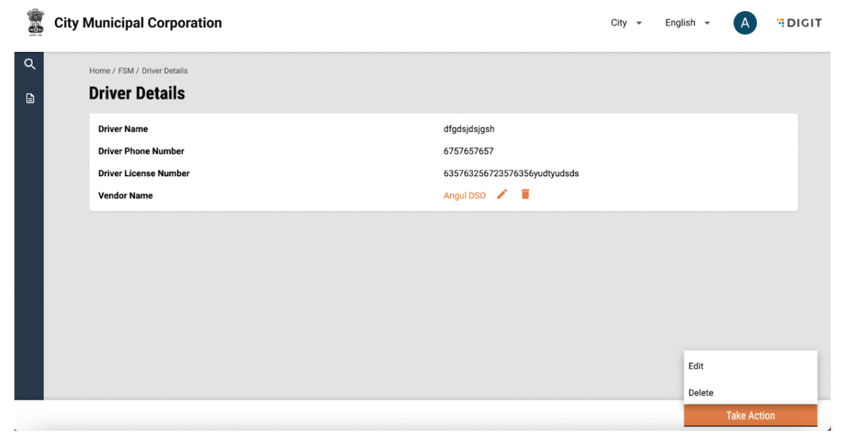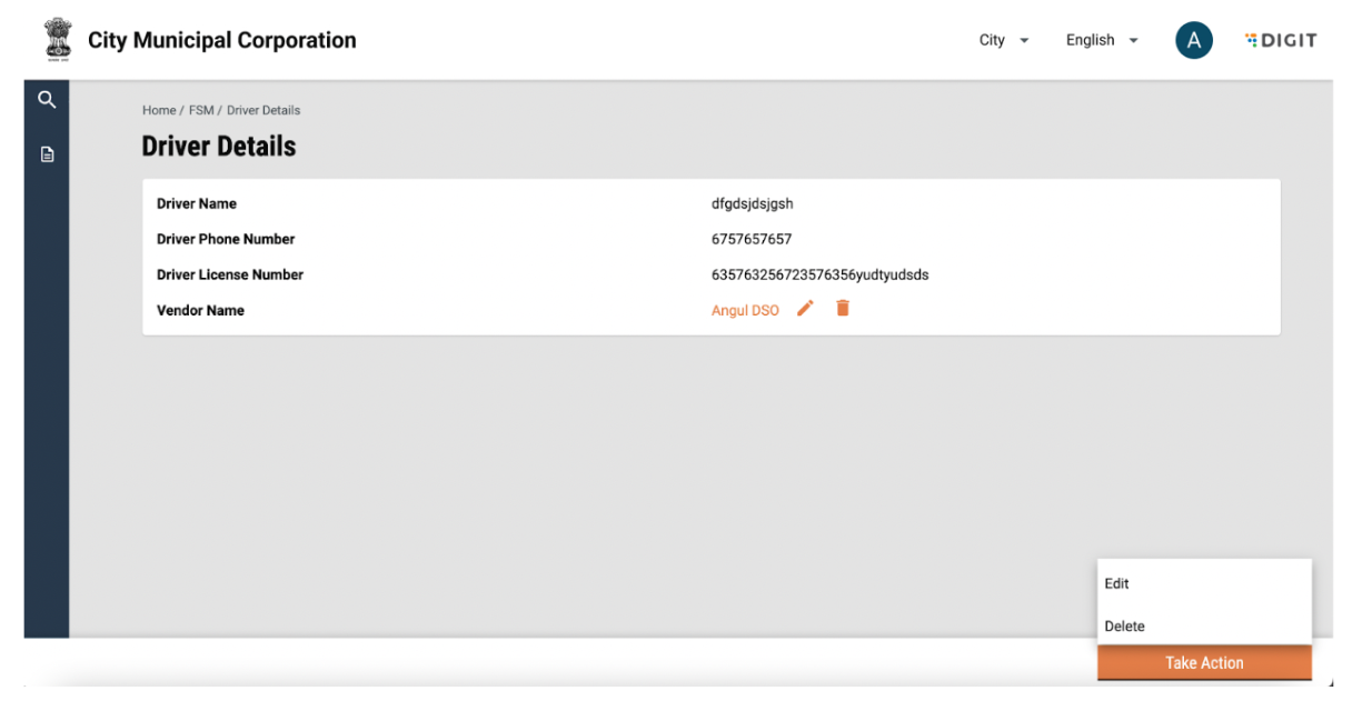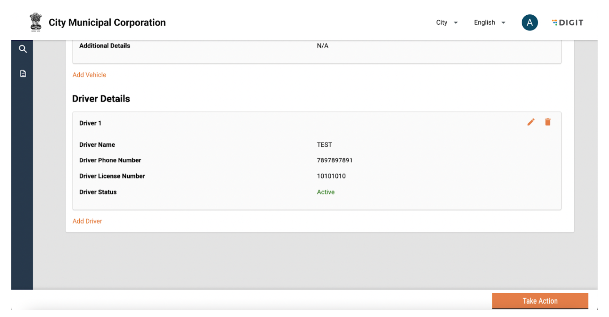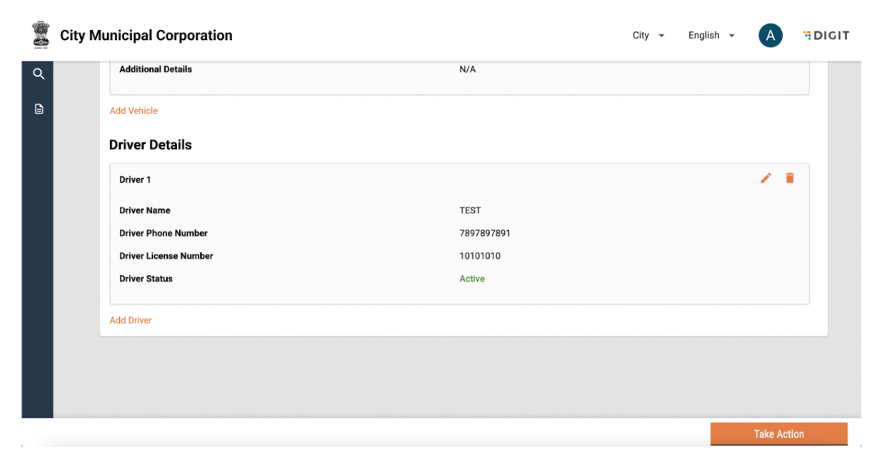 Driver details can be edited by clicking on the “Take Action” button and selecting edit. The user can add or edit information and click on submit application. The changes will reflect in the driver details page.