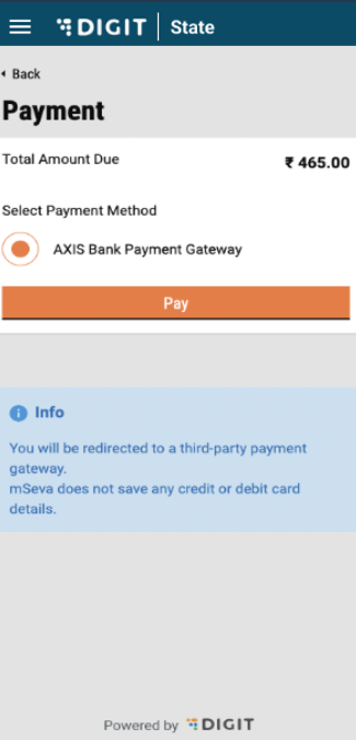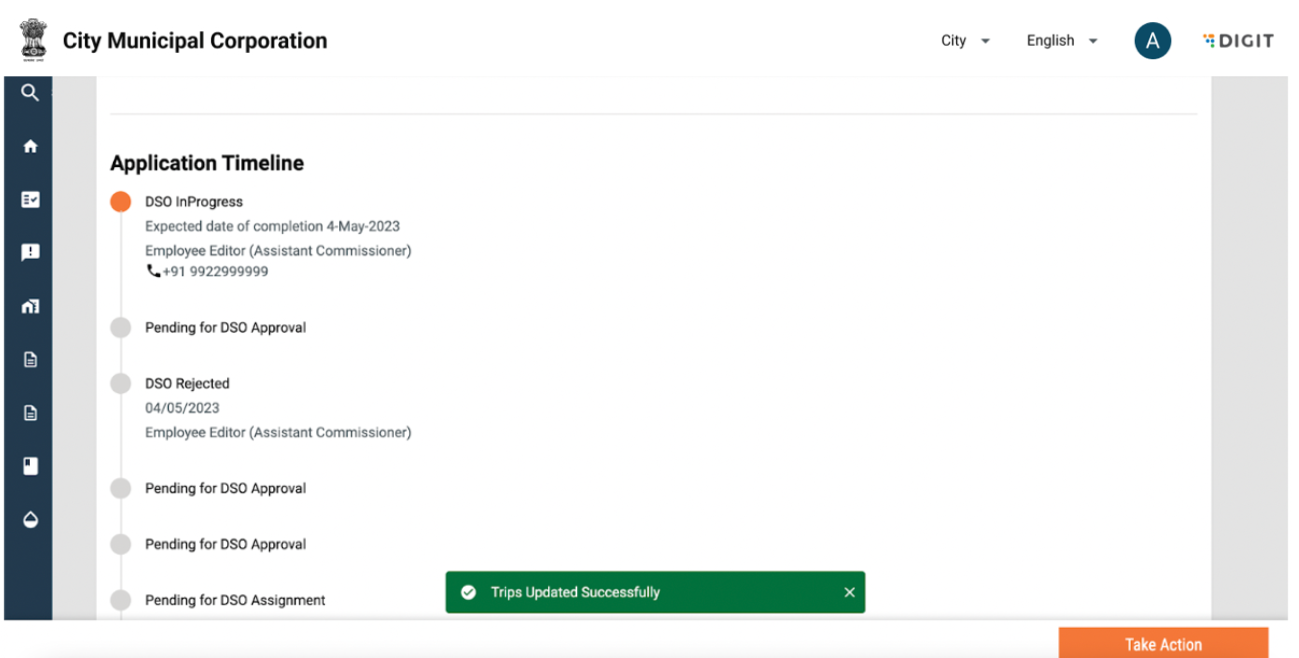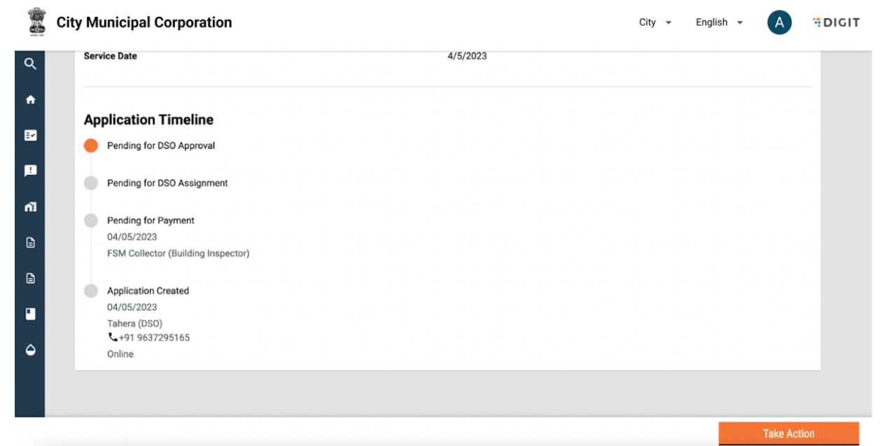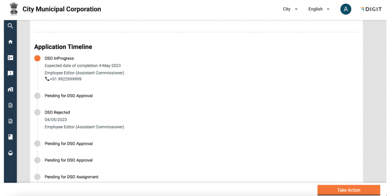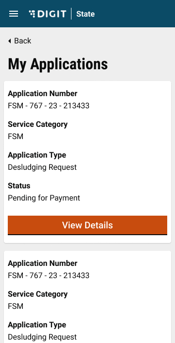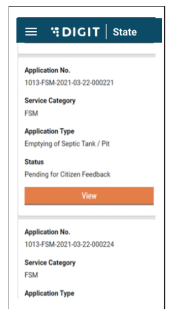 The “My Applications” page lists down all the ongoing applications and will display the Application No., Service Category and Application Status. A view button will be made available along with each application. Once the user clicks on ‘View’, they are redirected to the following page: