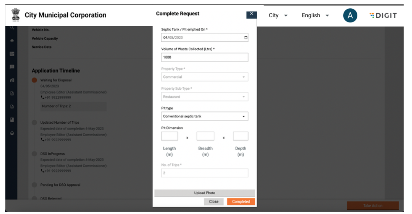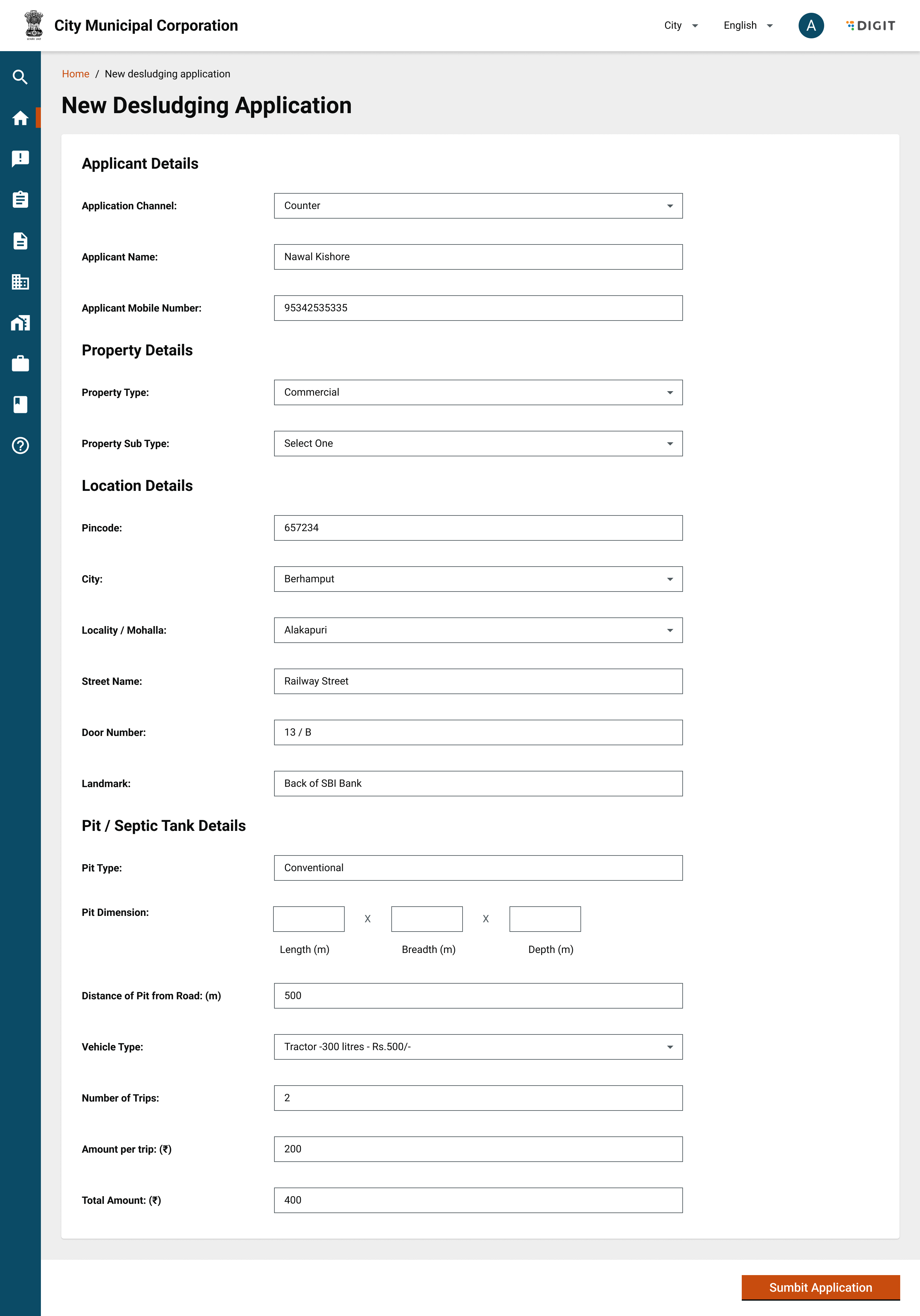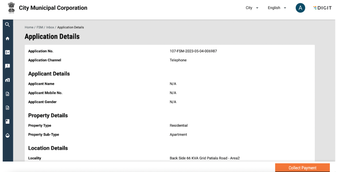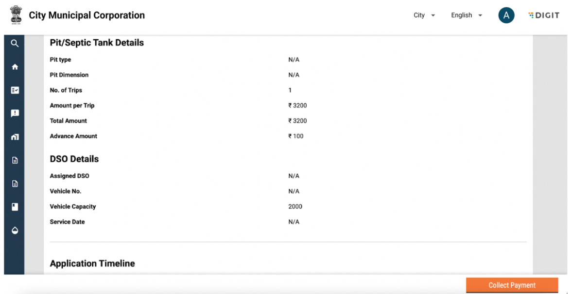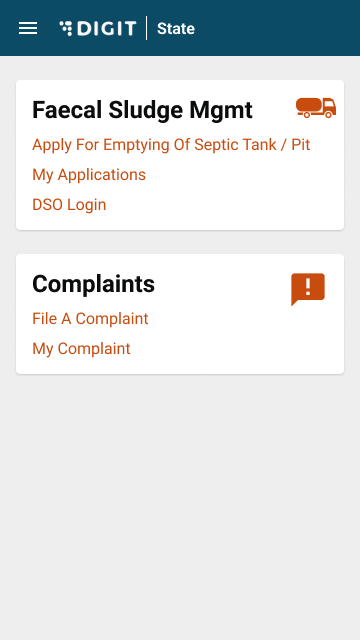 The citizen can apply for desludging requests by clicking on “Apply for Emptying Septic Tank/Pit”. This will redirect the user to the service request page.
