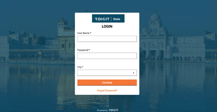 The city field is a dropdown based on the tenets created in the instance. Once all fields are filled, the user can click on ‘Continue’. If any field is not filled, the user will be prompted to fill all fields.
